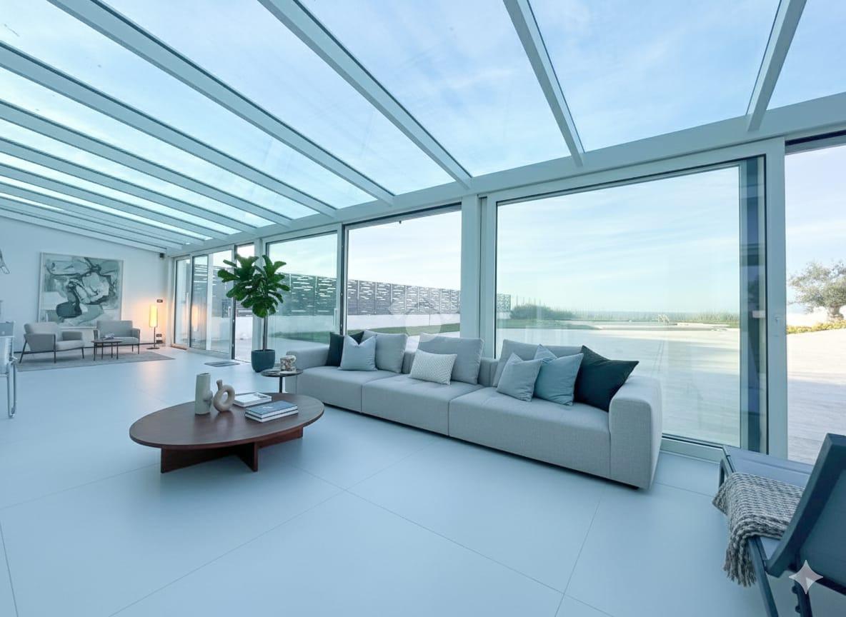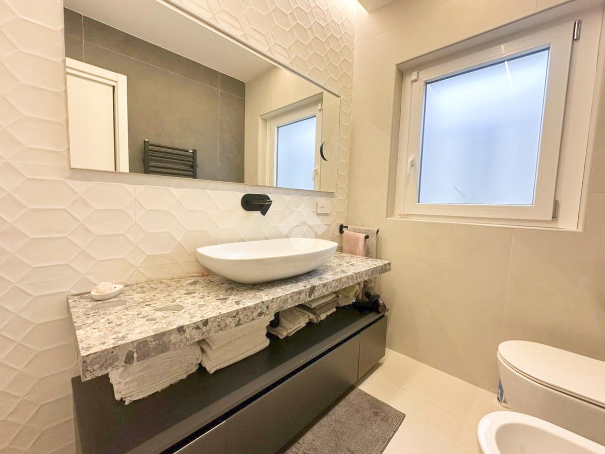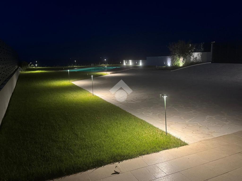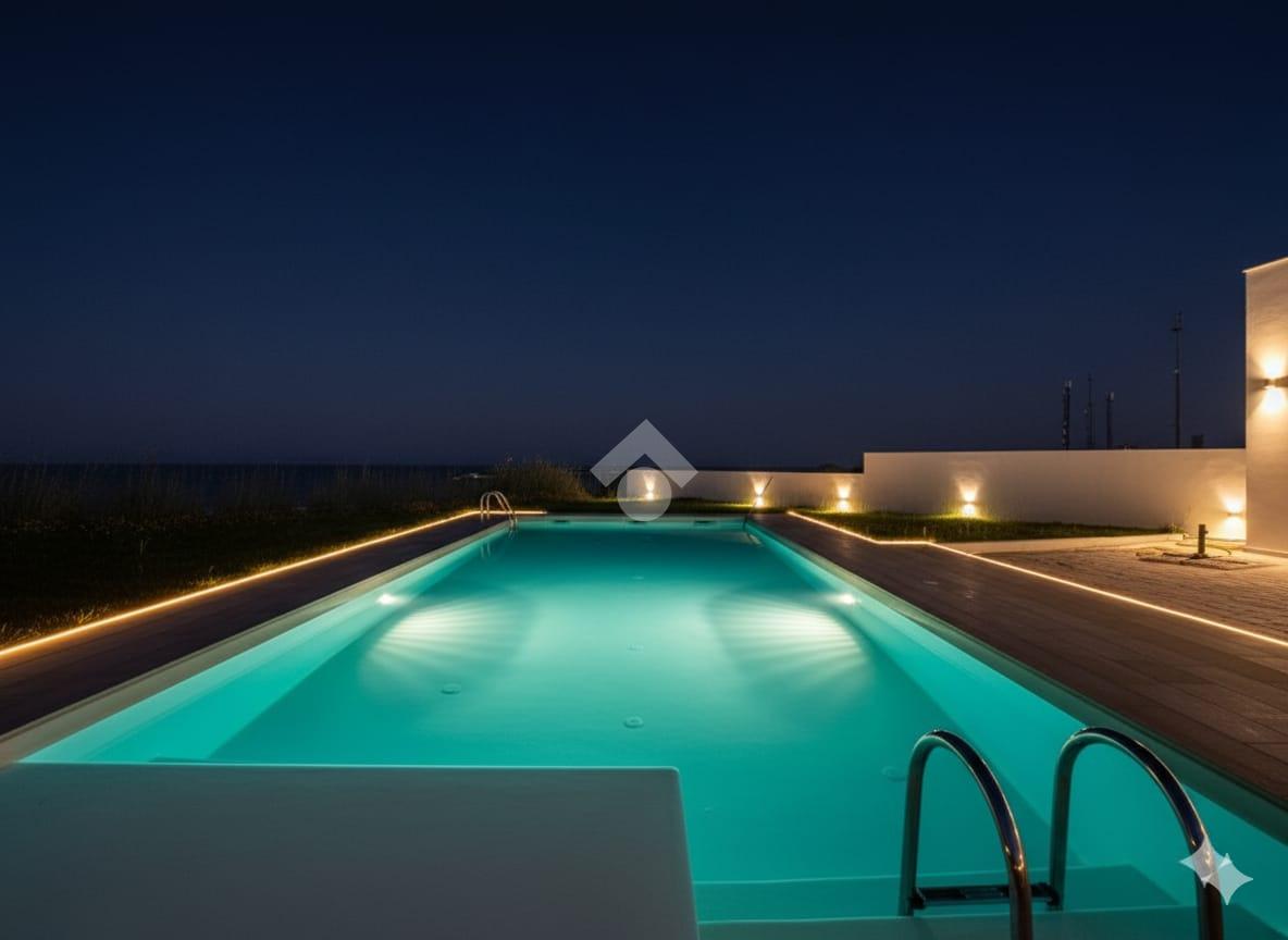 La proprietà è circondata da un’area esterna di circa 700 mq, parzialmente pavimentata con pietra di Apricena, e include una confortevole piscina con idromassaggio. Gli interni sono rifiniti con materiali di pregio e dotati di infissi ad elevata prestazione termico-acustica. Il riscaldamento a pavimento e l’aria condizionata assicurano il massimo comfort in ogni stagione.