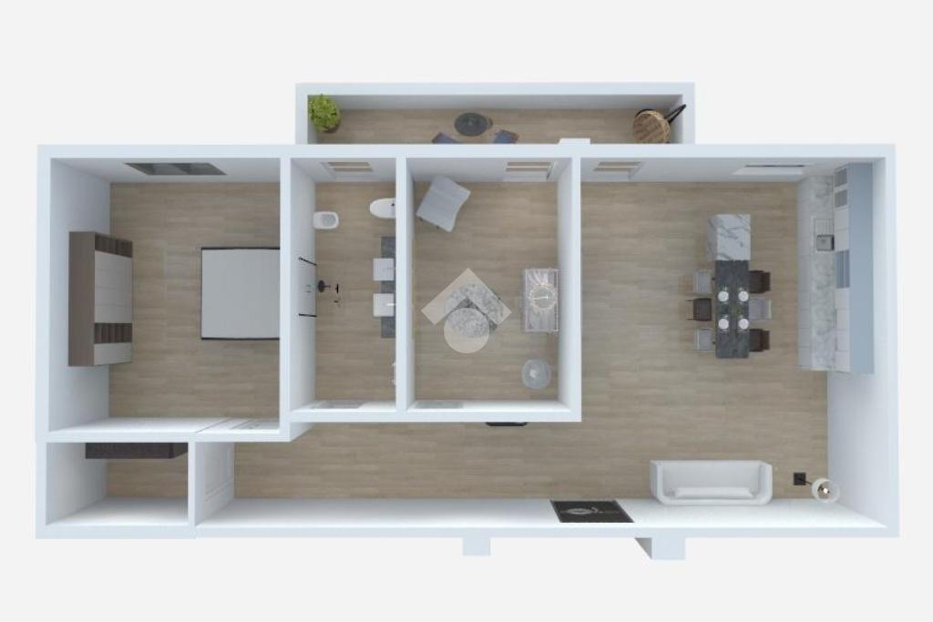 L'appartamento, di 80 mq, offre un'accogliente zona giorno open space, ideale per momenti di relax e convivialità. La zona notte comprende una camera da letto principale e una cameretta, perfetta per ospiti o bambini, il bagno ed infine un pratico ripostiglio il quale offre la possibilità di essere trasformato in un secondo bagno o lavanderia, a seconda delle esigenze. L'immobile è dotato di un balcone, perfetto per godere di momenti all'aperto.
