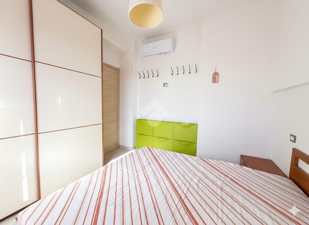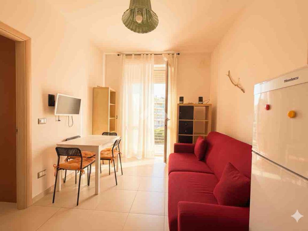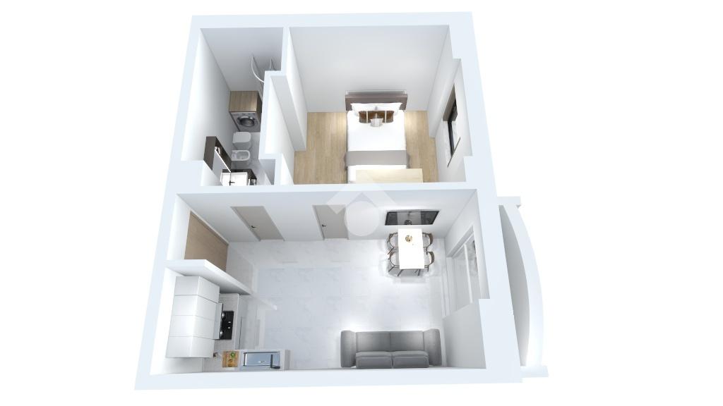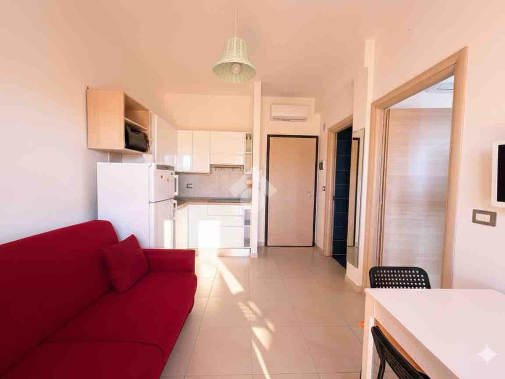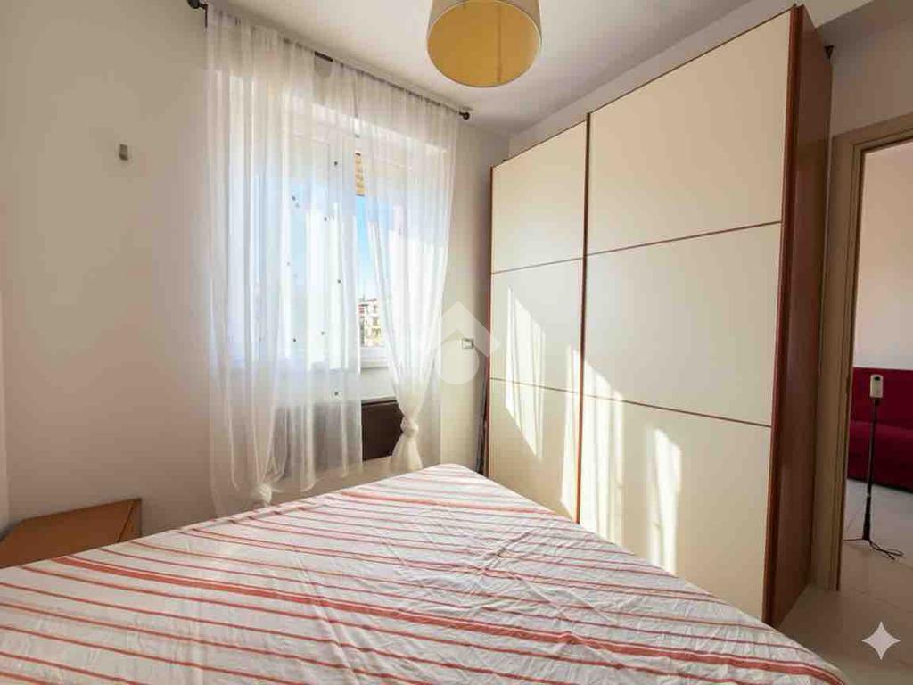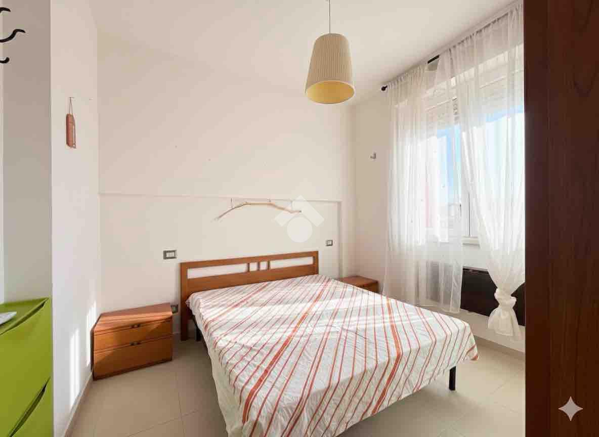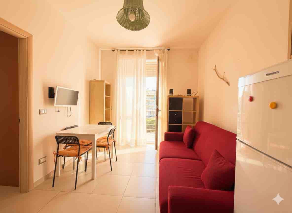 L'appartamento è composto da un luminoso soggiorno con cucina a vista, con accesso ad un balcone, una camera da letto matrimoniale e un bagno dotato di doccia. La presenza di aria condizionata garantisce comfort in ogni stagione.