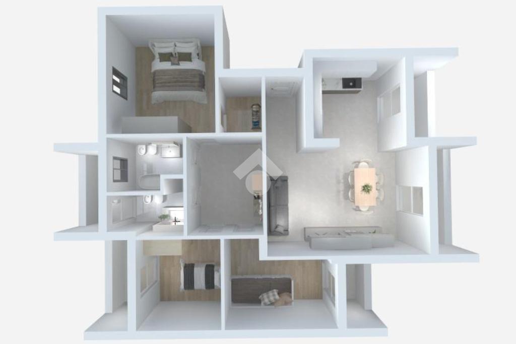 L'immobile si compone da quattro locali ben distribuiti, ingresso su un soggiorno ampio con cucina ambiente unico, la zona notte comprende tre camere da letto, di cui una dotata di una pratica cabina armadio. La presenza di due bagni entrambi finestrati, garantisce comodità e luminosità. La disposizione degli spazi è ideale per chi cerca un'abitazione accogliente e ben organizzata.